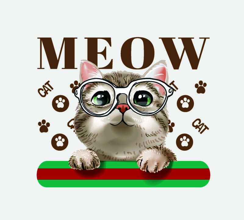 Cat, Meow with Glasses Statement, Cute Cat Design Shirt - CCD 2