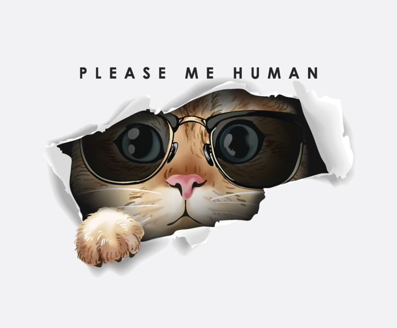 Cat, Please Me Human Statement, Cute Cat Design Shirt - CCD 4
