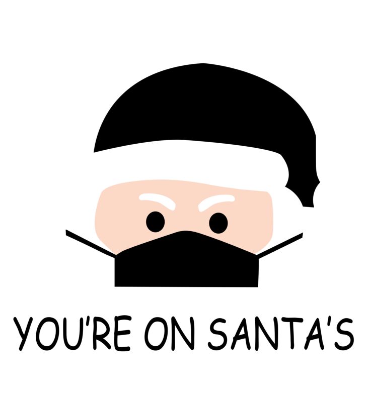 Christmas Designs, Funny Christmas Designs, Template, Black and White, PNG, Christmas Template Designs, You're on Santa's, Mens Design, Ladies Design, Digital Printing, Full Print, Shirts, Mugs, Keychain, Poloshirt, Jacket, Customizable, Personalized Gift