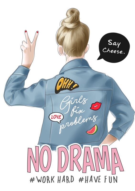 Girl Design, No Drama, Work Hard, Have Fun, Female Shirt Design, FEMME3
