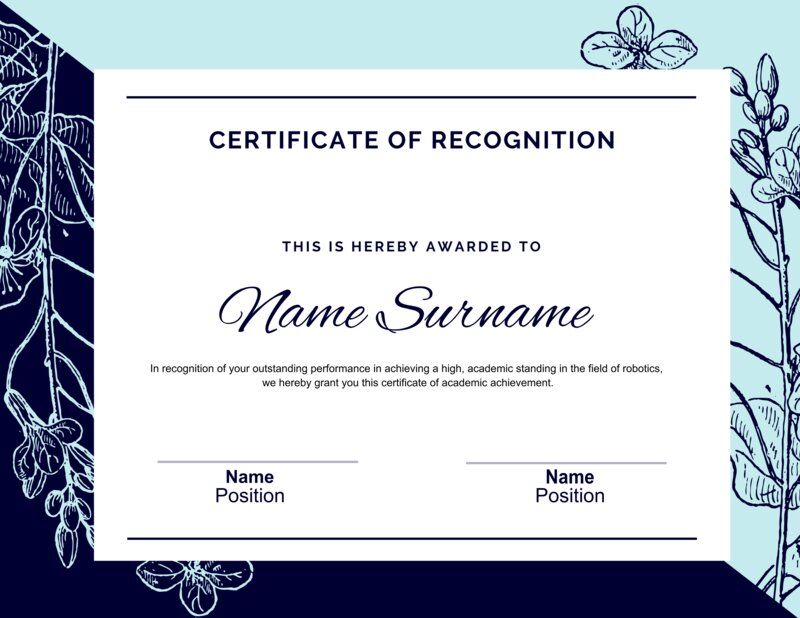 Light Blue & Dark Blue Certificate of Recognition