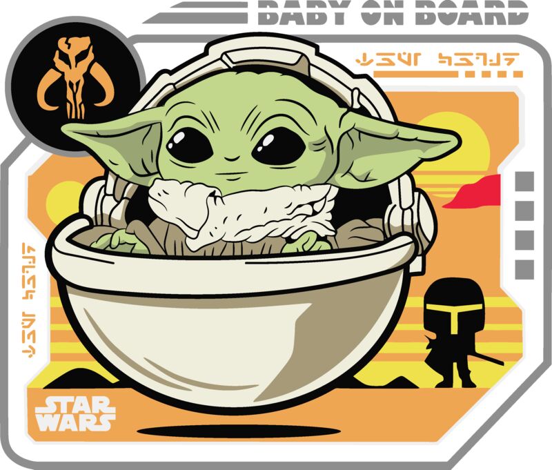 Mugs Designs , Template , Solid Color , Green , Yellow , Red , Orange , Black and White , PNG , Funko Pop , Star Wars , Yoda , Digital Printing , Customizable , Personalized Gift - Funko Baby Yoda Baby On Board