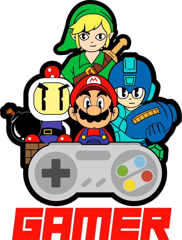 Retro Gaming , Template , Solid Color , Colorful , PNG , Gaming , Gamer , Zelda , Megaman , Bomberman , Super Mario , Men Designs , Digital Printing , Customizable , Personalized Gift - gamer retro