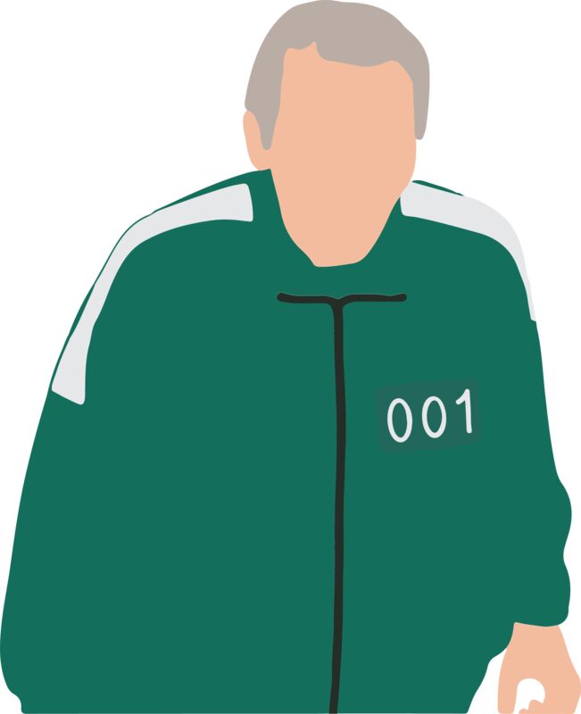 Squid Game, Background, Cliparts, Solid Color, Black, Teal, Gray and White, PNG, The Old Man, Oh il-Nam, Mens Design, Ladies Design, Digital Printing, Full Print, Shirts, Mugs, Keychain, Poloshirt, Jacket, Customizable, Popular, Personalized Gift - SQG