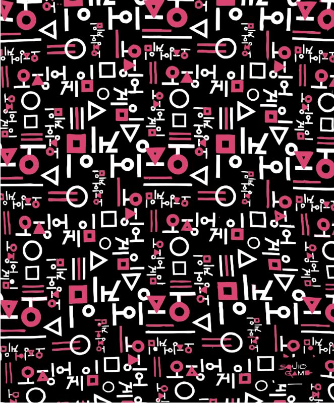 Squid Game, Background, Full Background, Solid Color, Black, White and Pink, JPEG, Korean Text Design , Background Design, Mens Design, Ladies Design, Digital Printing, Full Print, Shirts, Mugs, Keychain, Poloshirt, Jacket, Customizable, Popular, Persona