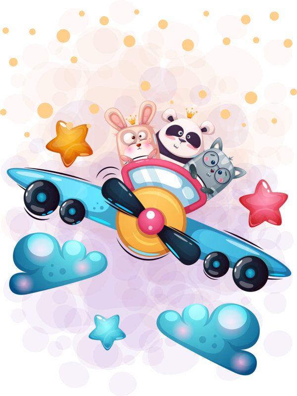 Vector, Cute Animal Friends In Airplane Clipart, Cute Vectors Kids - A 09