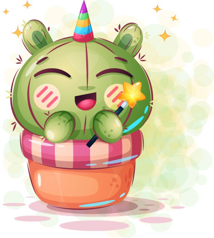 Vector, Cute Smiling Cactus Clipart, Cute Vectors Kids - A 01